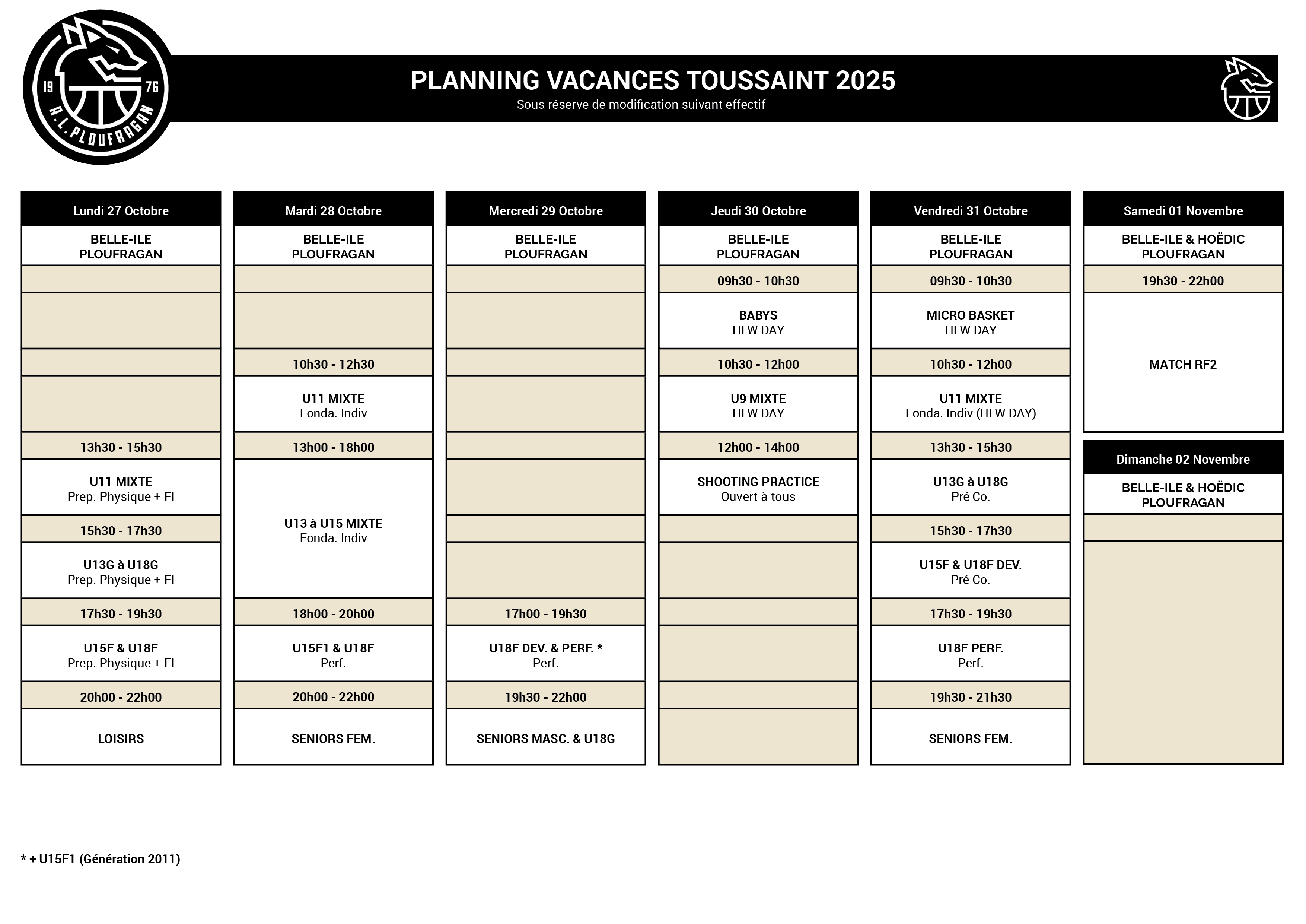 Elles se dérouleront la seconde semaine des vacances scolaires. Planning ci-dessous.